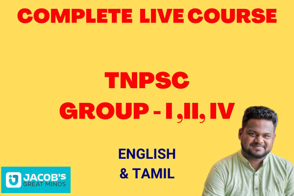 In this Course, Jacob Sir will cover the complete course for TNPSC Group - I, II, IIA, IV , VAO. Both the prelims and mains syllabus will be covered with a year long live classes and can watch the recorded classes. Classes will be in both English and Tamil. Material will be provided in both Tamil and English. General Tamil Classes will be also covered in this class.